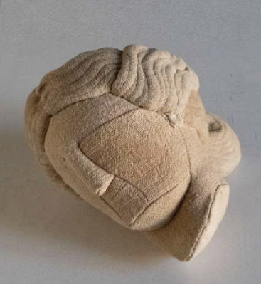 Sergio Roger réinterprète ici des éléments emblématiques de l’histoire de l’art gréco-romaine, pour nous permettre de redécouvrir de manière contemporaine la beauté et l’intemporalité des civilisations anciennes. Tombées, fragmentées, isolées, les œuvres de Roger semblent évoquer un luxe en déclin, dont le magnétisme ne cesse d’impressionner et d’inspirer. Ces pièces de statuaire textile, réalisées dans les tissus les plus raffinés datant du début du XXe siècle, en particulier unlin vieux de 100 à 150 ans soigneusement choisi par l’artiste auprès d’antiquaires, incarnent la fascination et le désir de subversion qui accompagne notre regard sur les vestiges de notre passé. Roger nous invite à déconstruire notre vision préconçue du passé - codifiée par une archéologie qui nécessite parfois de faire appelle à la fiction - et à réfléchir sur la permanence et l’idéalisme associés à l’art traditionnel.